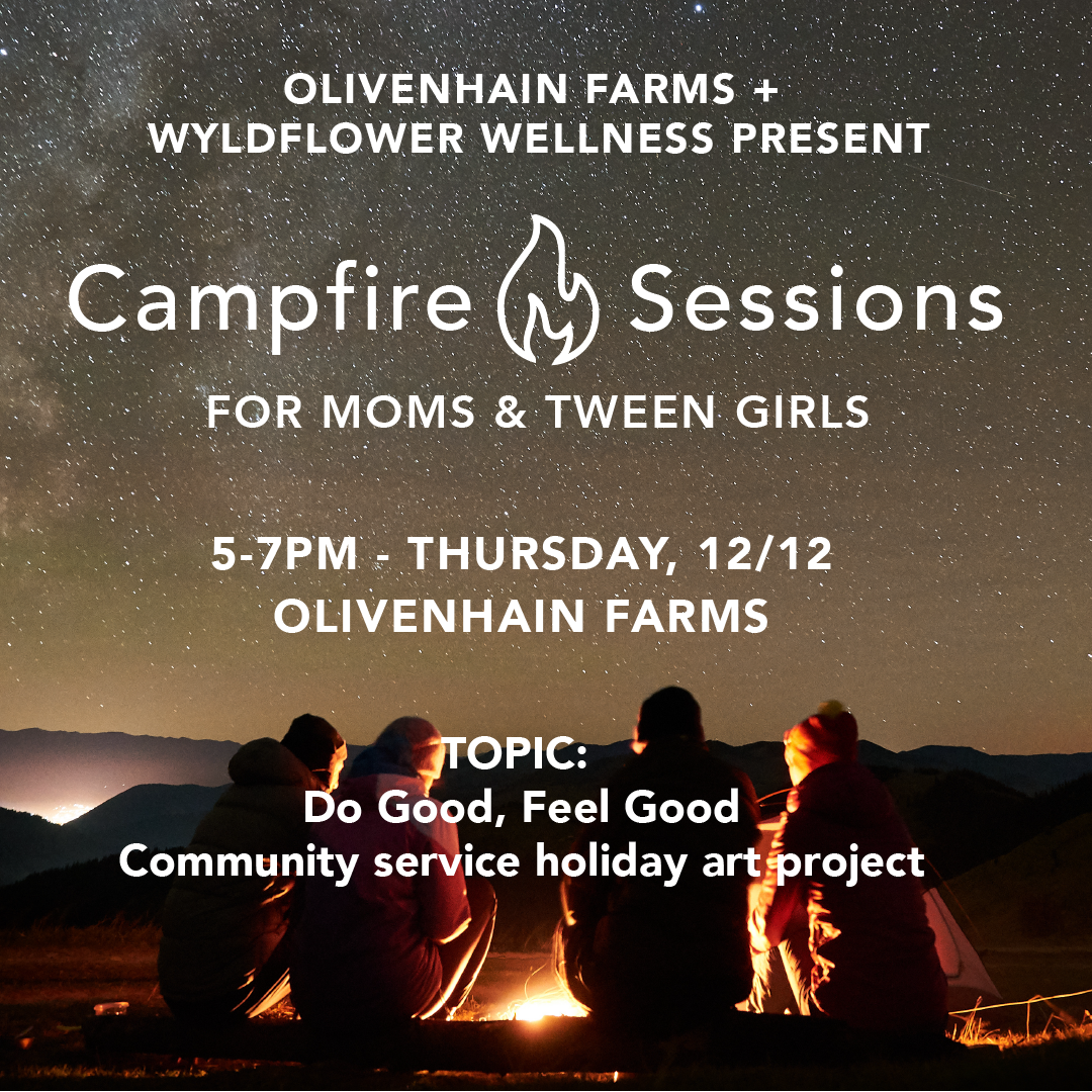 Gather with us around the fire for a meaningful evening of connection and giving back! This session, we’ll dive into the impact of Community Service—from learning about local volunteer opportunities to creating holiday cards for seniors. It’s a chance to make a difference, together. Why Helping Others Feels Good: Did you know that helping others can actually make you feel good too? During our campfire, we’ll explore how giving back naturally releases, what scientists call, “happy hormones”, helping us boost mood, strengthen connections, and build confidence. The Happiness Chemicals are: Dopamine brings pleasure and rewards. Serotonin lifts our mood and helps us rest well. Oxytocin bonds us with others and is known as the “love hormone.” Endorphins relieve pain and reduce stress. Understanding how to turn on these hormones and when is a tool not taught often enough and can provide a lifetime of rewards. What to Expect: Creative Giving: We’ll spend time making beautiful, heartfelt holiday cards for local seniors at Belmont Village Senior Living Center in Cardiff, brightening someone’s day while connecting with each other. Discussion on Positive Coping: We’ll talk about how helping others and making good choices can bring lasting happiness, encouraging healthy habits now and in the future. When we learn to lift others up, we strengthen ourselves, too. Join us in building a foundation of kindness, community, and self-care—one mother, one daughter, and one campfire at a time. With snacks and appetizers sponsored by Whole Foods! Sign up now to reserve your spot and be part of something special. $25 per person, includes supplies to make the cards.